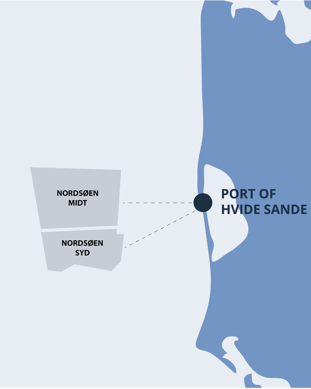 Som klart nærmeste havn til havvindmølleparkerne Nordsøen Midt og Nordsøen Syd er Hvide Sande Havn det nærliggende valg til etablering af O&M Center til møllernes driftsfase. Den korte afstand til parkerne giver optimale rammer for daglig drift, teknisk vedligeholdelse og mandskabstransport og indgår som en central del af havnens samlede offshore-aktiviteter.